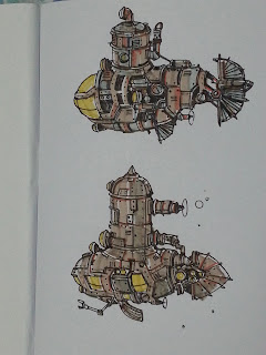 Pen and marker on paper of some medieval tower concepts